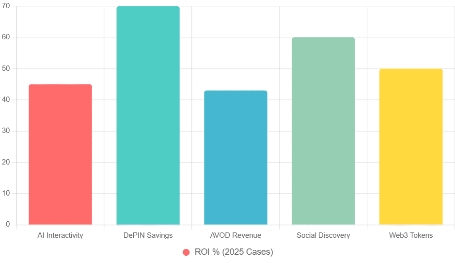 DePIN (Decentralized Physical Infrastructure)Blockchain networks for video delivery (e.g., Livepeer).Sub-second latency results in 70% cost savings.Developers/SMBs (ownership)Advanced