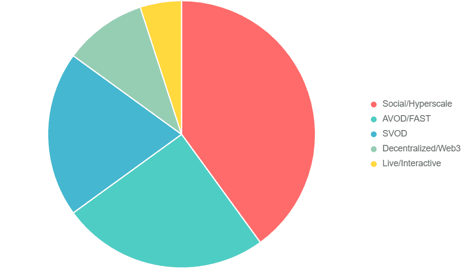 Hyperscale Social VideoAlgorithmic platforms (TikTok, YouTube) are dominating discovery and consumption.Gen Z discovers 60% of content here.All (primary engagement driver)Intermediate